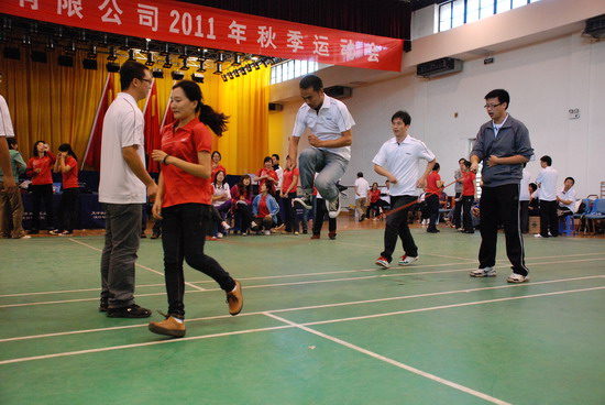 金秋送爽,丹桂飄香,為了豐富我公司職工的文化生活,更好地展示公司員工的精神風貌,增進員工之間的友誼,培養員工的集體意識和團隊合作精神,學習文明的生活方式,養成良好的體育運動習慣,由我公司舉辦的2011年秋季運動會于10月14日上午拉開了帷幕,公司總裁胡也明,黨委副書記、紀委書記、工會主席楊德廣出席了此次運動會開幕式并致辭。此次運動會是一場以“趣味”為主題,以“娛樂”為主線,以“全體性參與”為目的而開展的形式多樣、內容豐富的運動會。運動會有二人三足、筷子夾乒乓球、跳長繩、飛鏢四個集體項目,投籃、套圈二個個人項目。