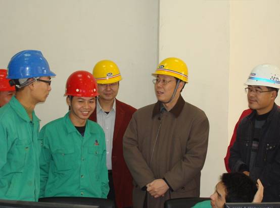 在中材羅定項目現場,胡總和水泥廠領導進行了座談交流,認真聽取了業主方對電站建設的建議,他非常關心項目部工作人員的工作和生活,抽時間來到辦公和休息的場所,認真詢問了施工人員的居住及飲食情況,指示項目經理部一定要把施工人員的生活安排好。