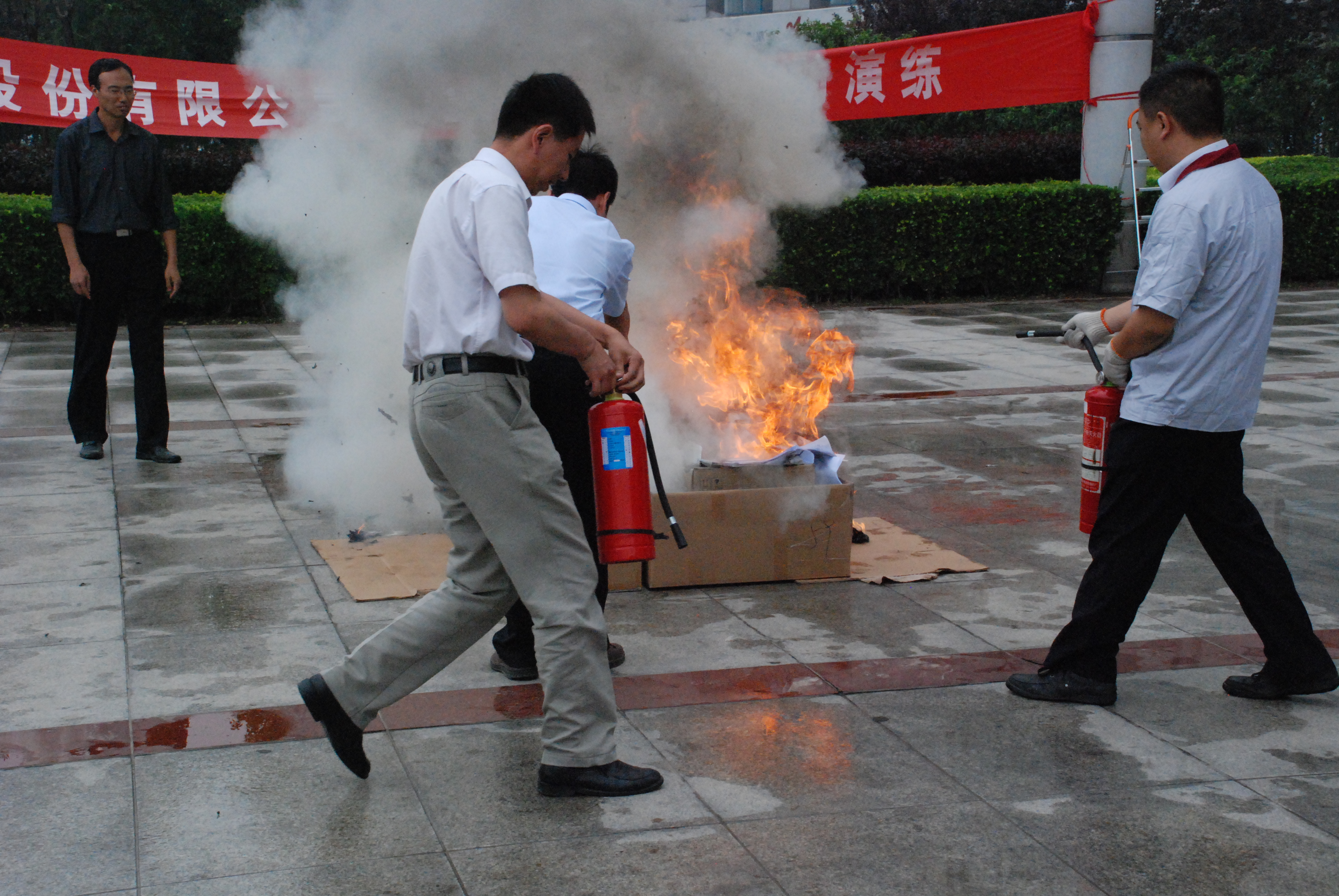 上午10點(diǎn),消防演習(xí)開始,各樓層疏散人員立即組織本區(qū)域員工井然有序地按照規(guī)定路線進(jìn)行緊張、快速的撤離,4分鐘內(nèi)完成撤離工作。安全撤離完畢后,滅火組成員現(xiàn)場(chǎng)演示了滅火器操作程序和使用方法,并讓部分員工親自使用滅火器進(jìn)行實(shí)地滅火。
