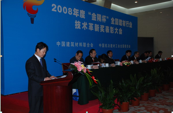 12月21日,2008年度“金隅杯”全國建材行業(yè)技術(shù)革新獎表彰大會在北京市人民大會堂隆重召開,會議公布了107個(gè)獲獎項(xiàng)目名單并向獲獎項(xiàng)目頒發(fā)了獎牌。