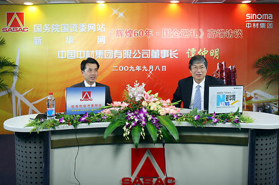 9月8日,集團(tuán)董事長(zhǎng)譚仲明做客新華網(wǎng)《輝煌60年,國企巡禮》高端論壇,與廣大網(wǎng)友“面對(duì)面”,就中材集團(tuán)的跨越式發(fā)展等一系列熱點(diǎn)問題進(jìn)行在線交流。