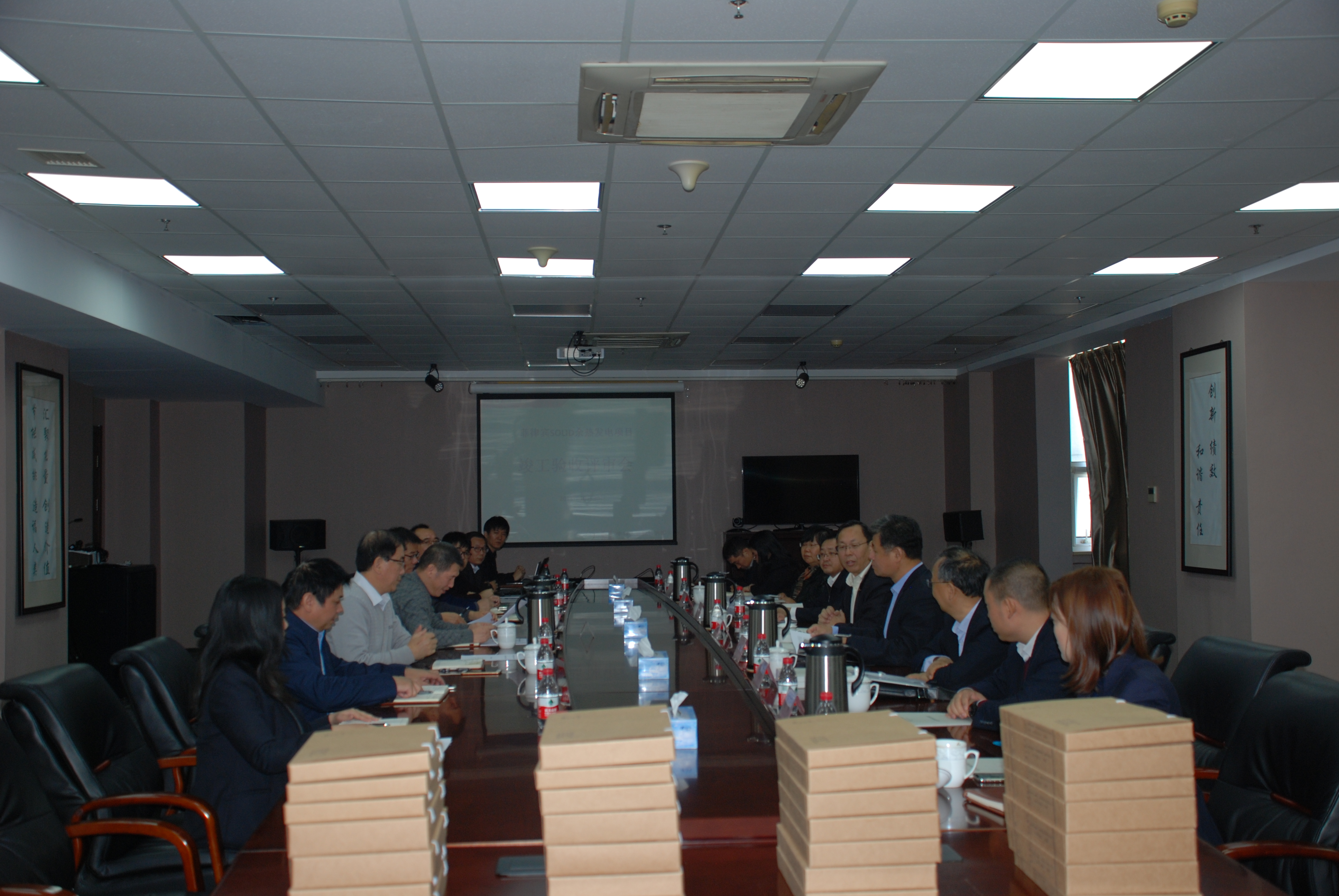 會上,合同能源管理事業部綜合管理部部長趙汝勝對項目概況、建設、調試、試生產運營及公司合規證件手續等情況進行了匯報,并播放了現場各系統設備運行狀態視頻。與會專家和驗收委成員認真審查了竣工驗收綜合報告和項目建設相關資料,經過綜合評審,菲律賓SOLID水泥余熱發電6MW項目建設投資控制在概算范圍內,項目建設工期少于合同工期,性能考核滿足合同要求。電站投入運行后,系統運行安全穩定,達到了預期投資收益,為公司進一步拓展國外投資市場打下了堅實的基礎,項目符合竣工驗收條件,驗收委員會同意通過竣工驗收。