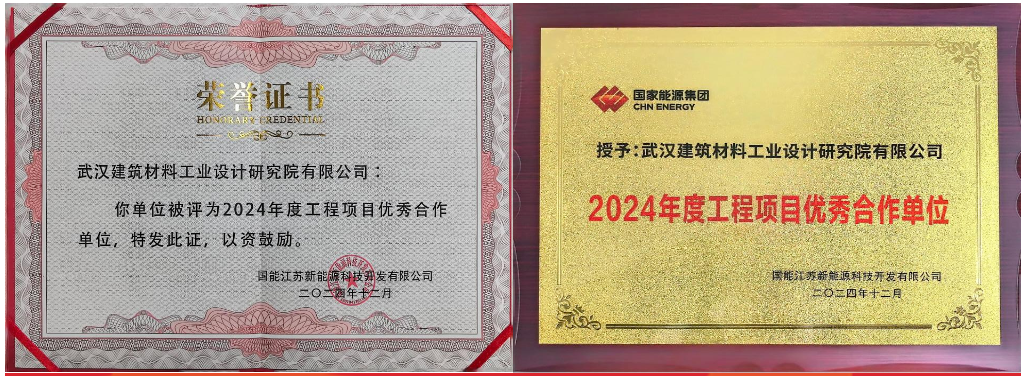 Recently, National Energy Group awarded Wuhan Building Material Industry Design & Research Institute Co., Ltd. with the title of “Excellent Cooperation Unit of Engineering Projects in 2024”, which is the second time for Wuhan Building Material Industry Design & Research Institute Co., Ltd. to get this honor after 2023. In recent years, Wuhan Building Material Industry Design & Research Institute Co., Ltd. has won a number of PV projects of National Energy Group's Jiangsu New Energy Science and Technology Development Company. Winning this title for two consecutive years fully reflects the high trust and recognition of National Energy Group on the ability of Wuhan Building Material Industry Design & Research Institute Co., Ltd. in terms of professional technology, performance and comprehensive services.